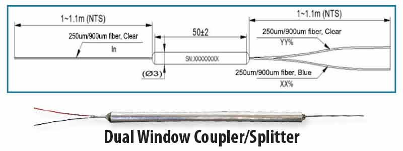 900um SINGLEMODE DUAL WINDOW COUPLERS/SPLITTERS