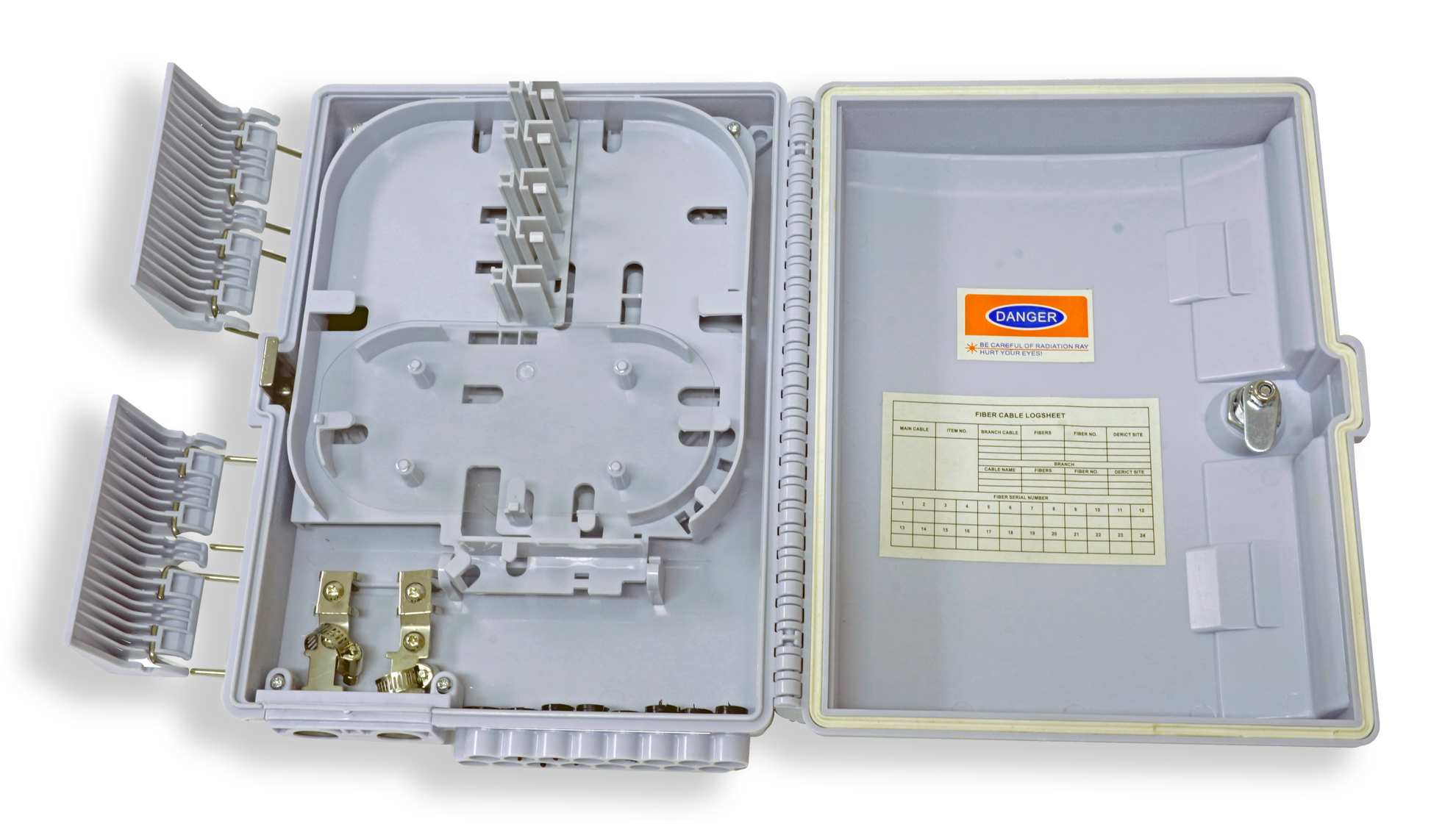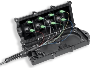 • Designed to accept 8 pre-terminated drop cables and up to 60 single splices